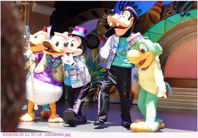 ミッキーとグーフィー そしてダンサーのステージの写真