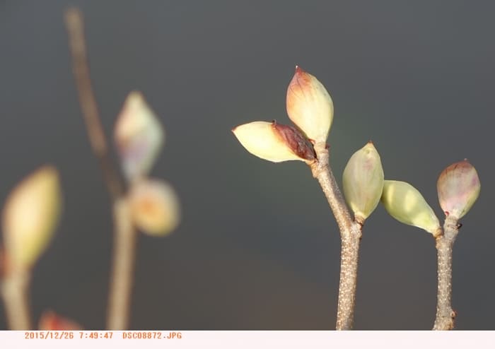 2015-12-26 とさみずきの蕾 散歩 ふれあいの森公園 トサミズキのつぼみ 散歩 冬が温かいせいでしょうか、とさみずきの木の蕾が大きくふくらみ出しています。 【とさみずき 〈土佐水木〉の つぼみ の 写真】 平成27年12月26日撮影 【土佐水木の蕾の写真】 平成27年12月24日撮影